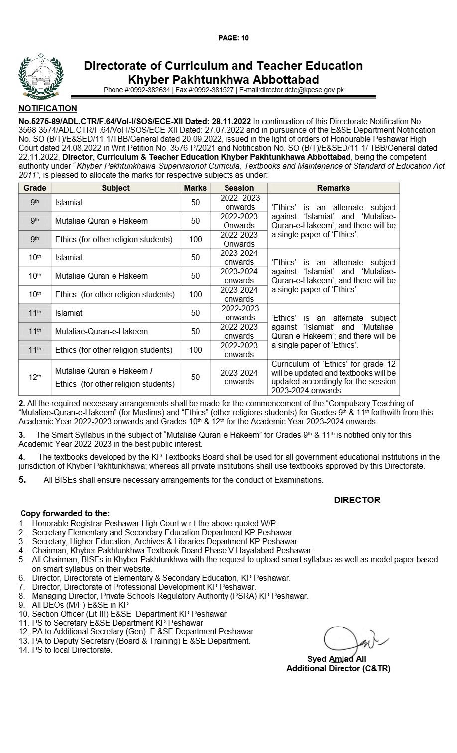 | S. NO | Subject Name | 9th | 10th |